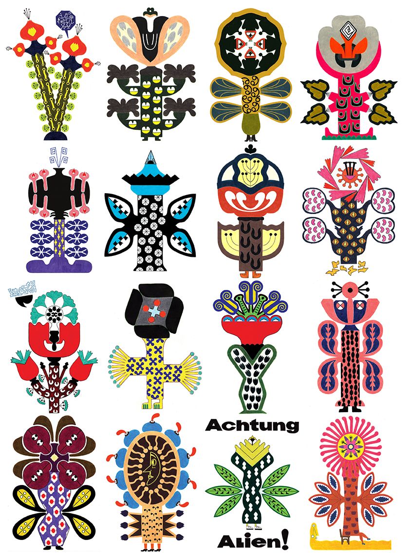 GUEST FLOWERS TO THE FRIENDLY INVASION is a series of illustrated postcards